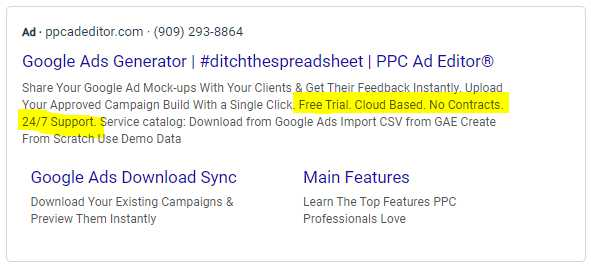Ad extensions are additional pieces of information that you can add to your ad to provide searchers with more context about your business. They can be in the form of site links, callouts, structured snippets, call buttons, or location. Ad extensions are not counted as part of your character count but we still recommend using them to improve